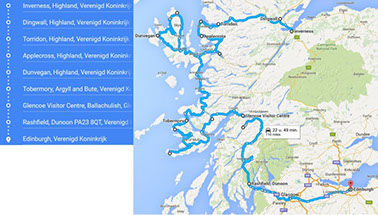 We vliegen op Inverness en rijden door indrukwekkende landschappen naar Edinburgh.